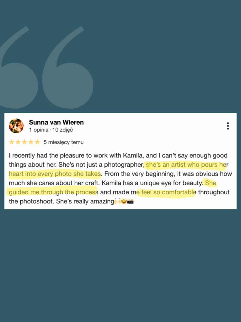 Kamila specializes in capturing authentic, emotional portraits that reveal the true essence of each woman – beyond appearances, beyond perfection. Her work is not about posing; it’s about seeing yourself with gentleness and acceptance, through the eyes of compassion.